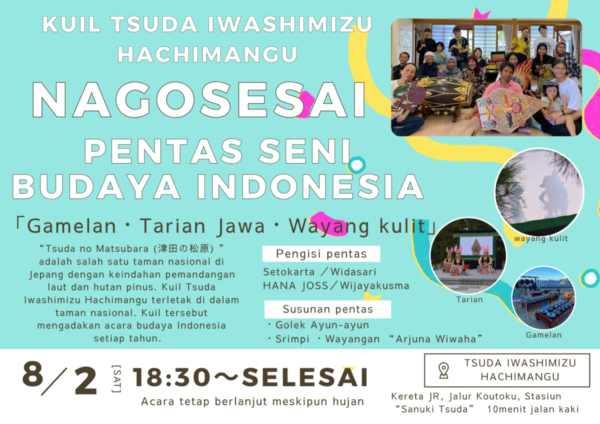 “Tsuda no Matsubara (津田の松原) ” adalah salah satu taman nasional di Jepang dengan keindahan pemandangan laut dan hutan pinus. Kuil Tsuda Iwashimizu Hachimangu terletak di dalam taman nasional. Kuil tersebut mengadakan acara budaya Indonesia setiap tahun.